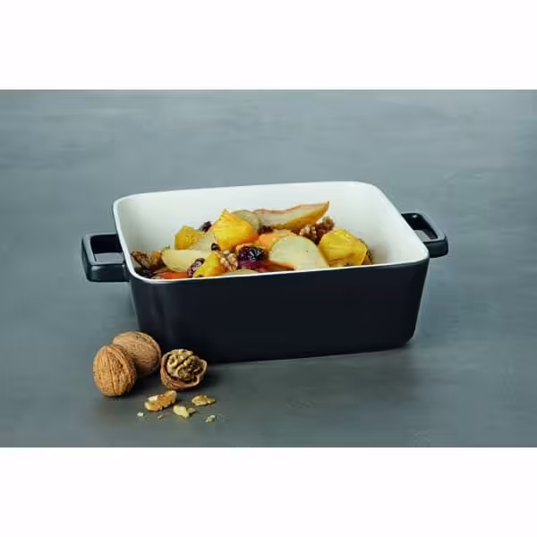 Porzellan. Aussen schwarz glasiert. Ofen- und Spülmaschinenfest.