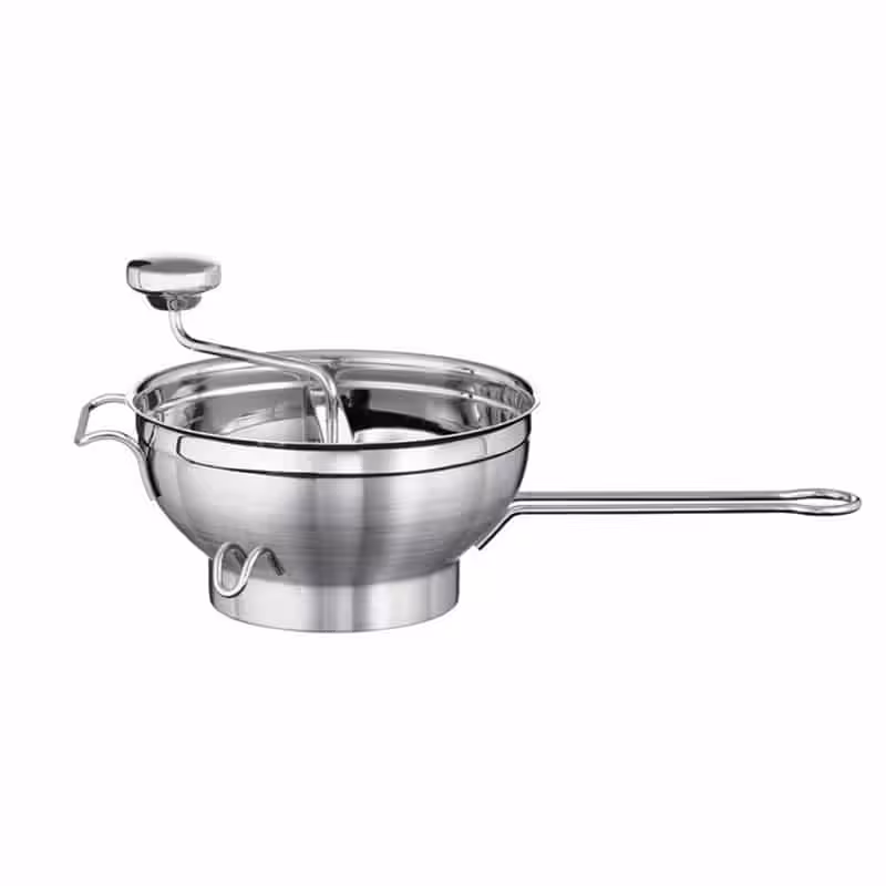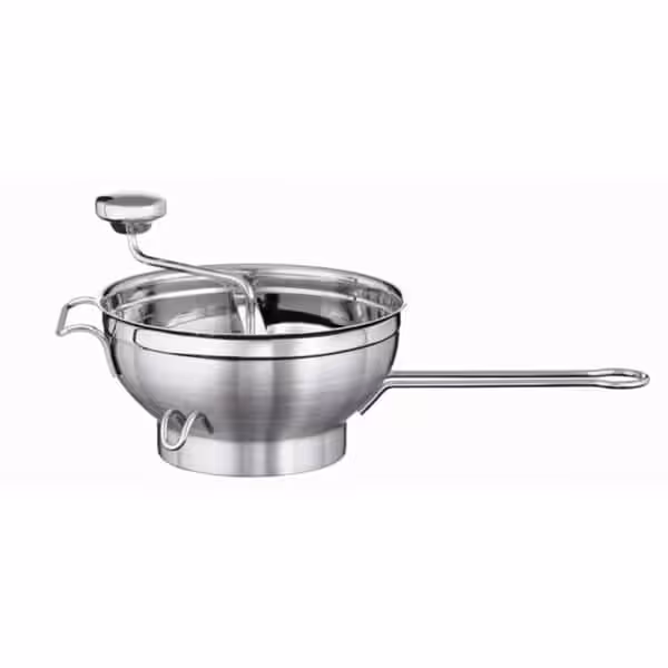 Rösle Passiergerät Ø23.5cm. Durch die stabile Edelstahlkonstruktion ist das Passetout auf die hohe Materialbeanspruchung beim Passieren ausgelegt, die Dreipunktauflage gewährleistet einen sicheren Halt, mit zusätzlichem Gegengriff, inkl. zwei Siebeinlagen 1 und 3 mm